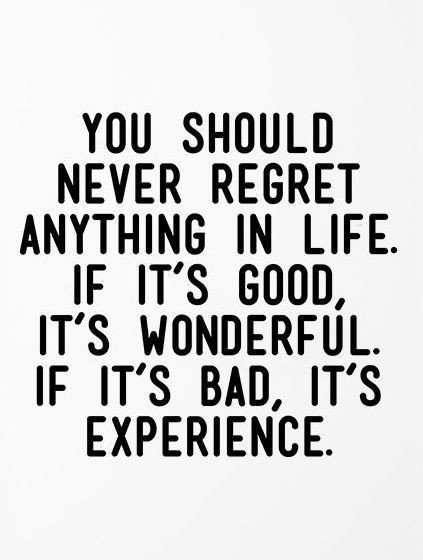Then we realize that what we regretted before was actually the best possible thing, scenario, and we stop regretting it whatsoever.